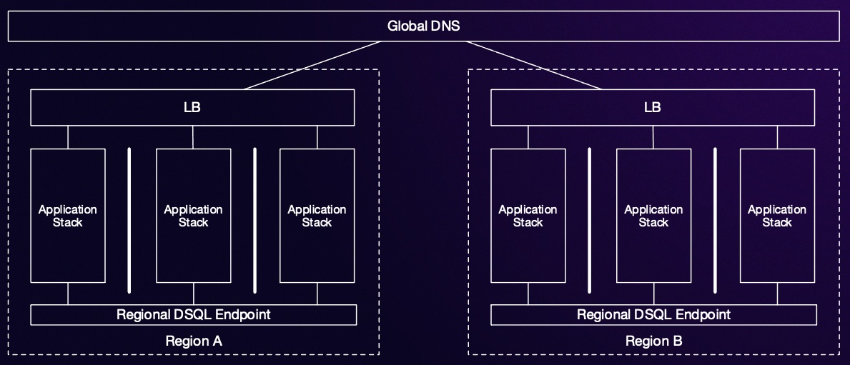 Here, we’ve built out an application architecture here across multiple AZs in each region, used the local DSQL endpoint in each region, and routed customers to the right region using latency-based DNS routing. Taking advantage of an active-active distributed database means that many applications don’t even need to know they’re running across multiple regions - and don’t need to be modified to handle failover, switchover, and other tasks. Re-routing traffic at the front door, and handing hard problems like replication and consistency over to Aurora DSQL, greatly simplifies this architecture.